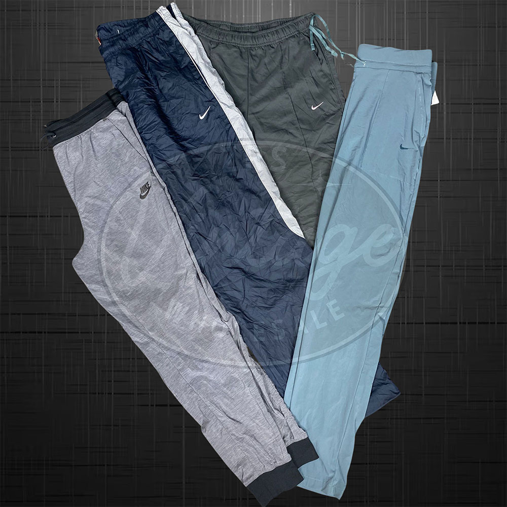 Nike track pants in nylon, parachute, and baggy cuts featuring original vintage logos. Popular Y2K and streetwear staple. Mostly regular sizes with up to 10% XS/XXL or waist above 38.